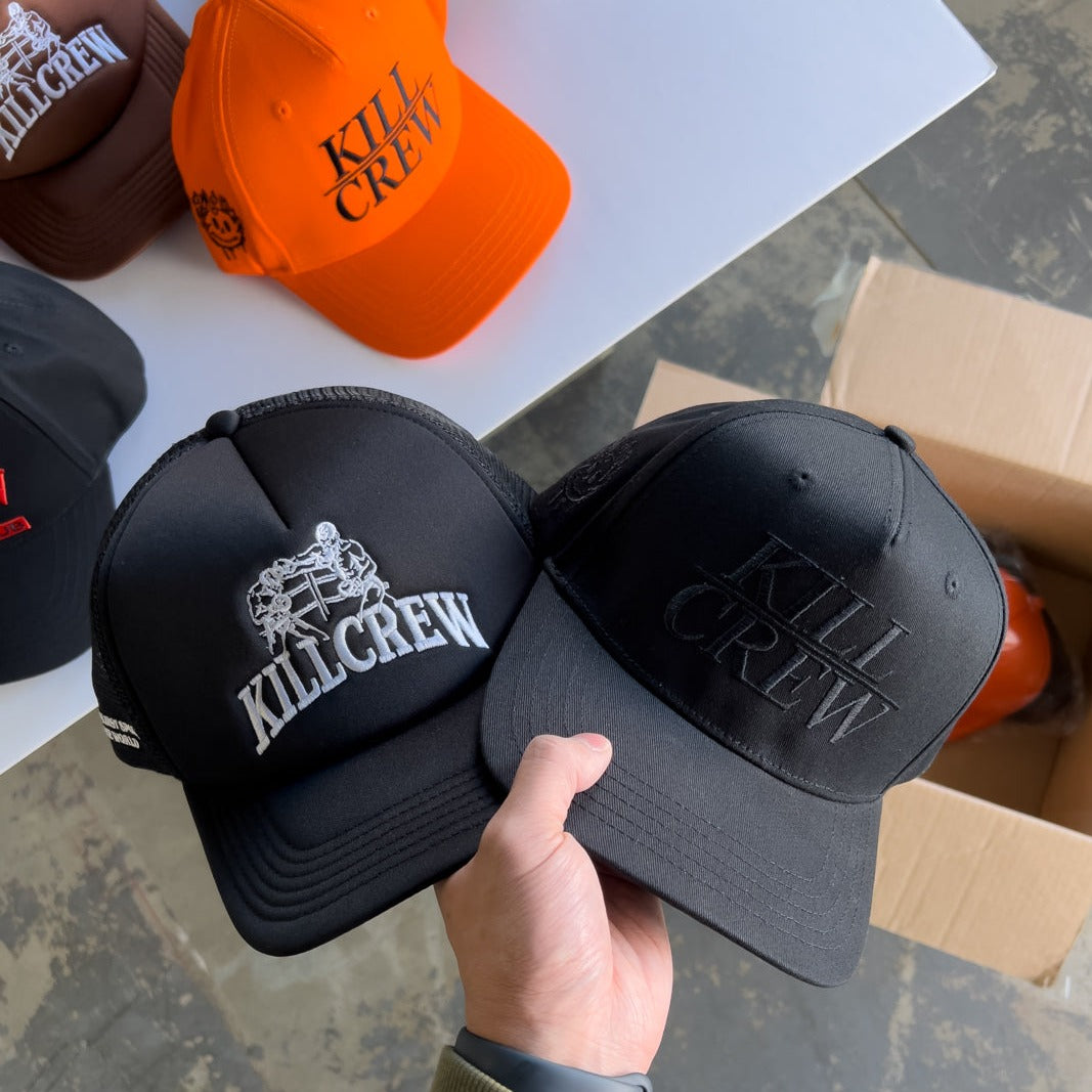 5-panel snapback hat embroidered with Kill Crew on the front and "Killing inner demons through rigorous training" on the side. Built with premium stitching for a clean look and a comfortable fit. Finished with an adjustable snapback closure for one-size-fits-all wear.