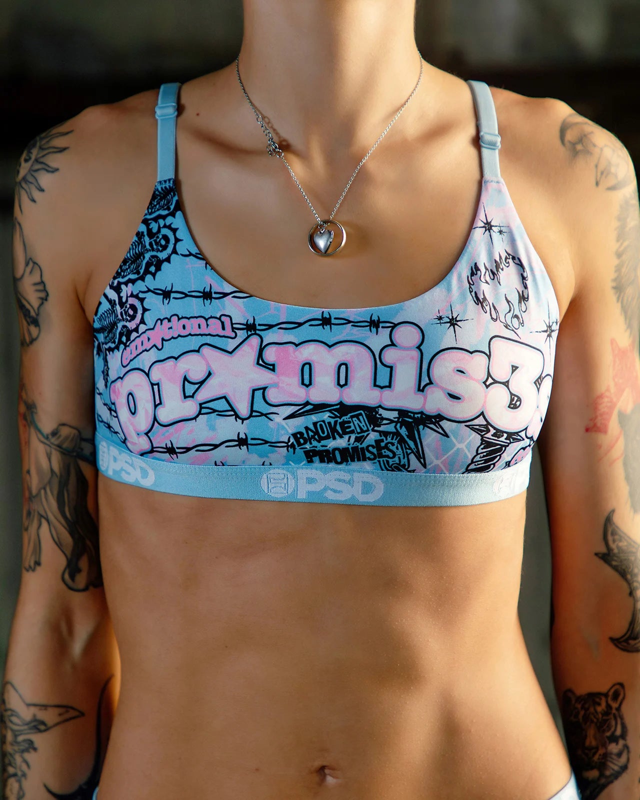 Gritty artwork, bold lettering, and a hit of emotional edge. This is Broken Promises x PSD in full force. The Forever Scoop Bralette almost feels like you're not wearing a bra at all. It’s fully lined, and features include adjustable straps, a cute scoop neckline, and a soft microfiber band that won't ride or rub.