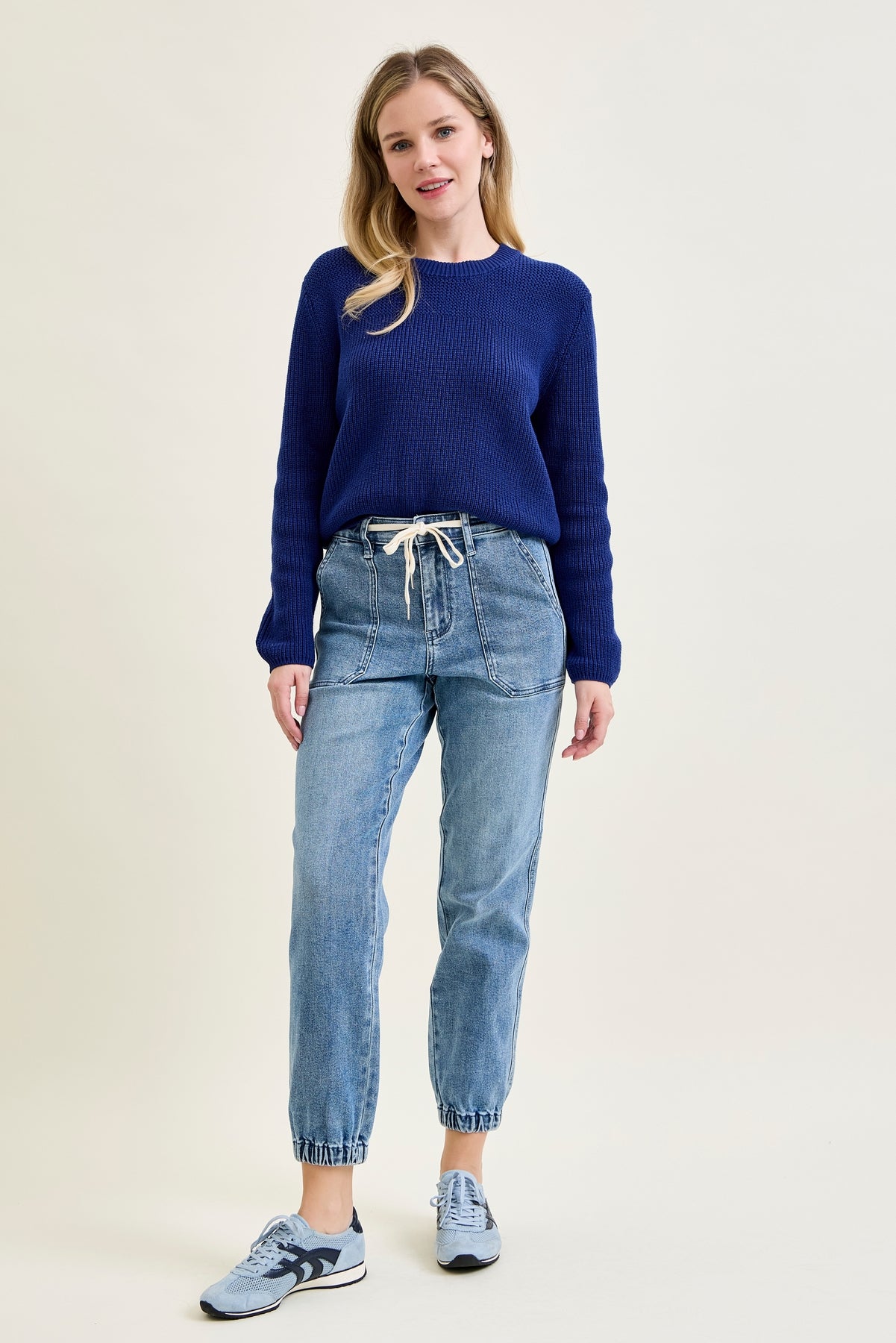 The Elena joggers bring together the cozy feel of loungewear with the polished look of denim. High-rise, super soft, and effortlessly cool, these are your new everyday favorites.