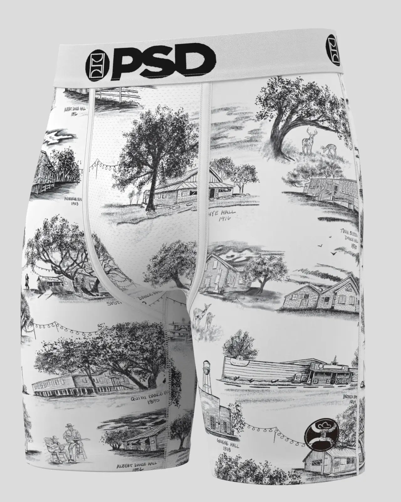 Get ready to do the boot scootin’ and boogie in this style from Hooey x PSD that features well-known, famous dancehalls from South Texas. The Dancehall briefs include our ultra-comfortable Signature WaistBand, a breathable MicroMesh pouch, and four-way stretch. The PSD 7” Standard Length Briefs won't roll or ride and were built for everything, from everyday wear to your toughest workouts.