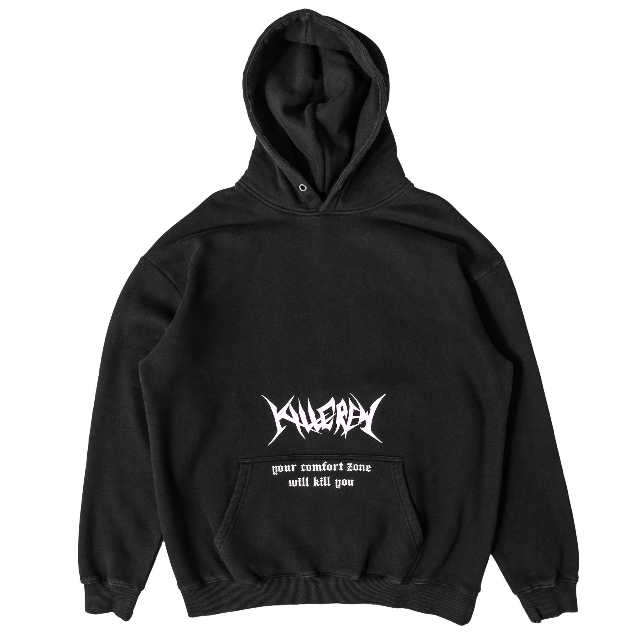 OVERSIZED LUX "COMFORT ZONE" HOODIE - BLACK / WHITE