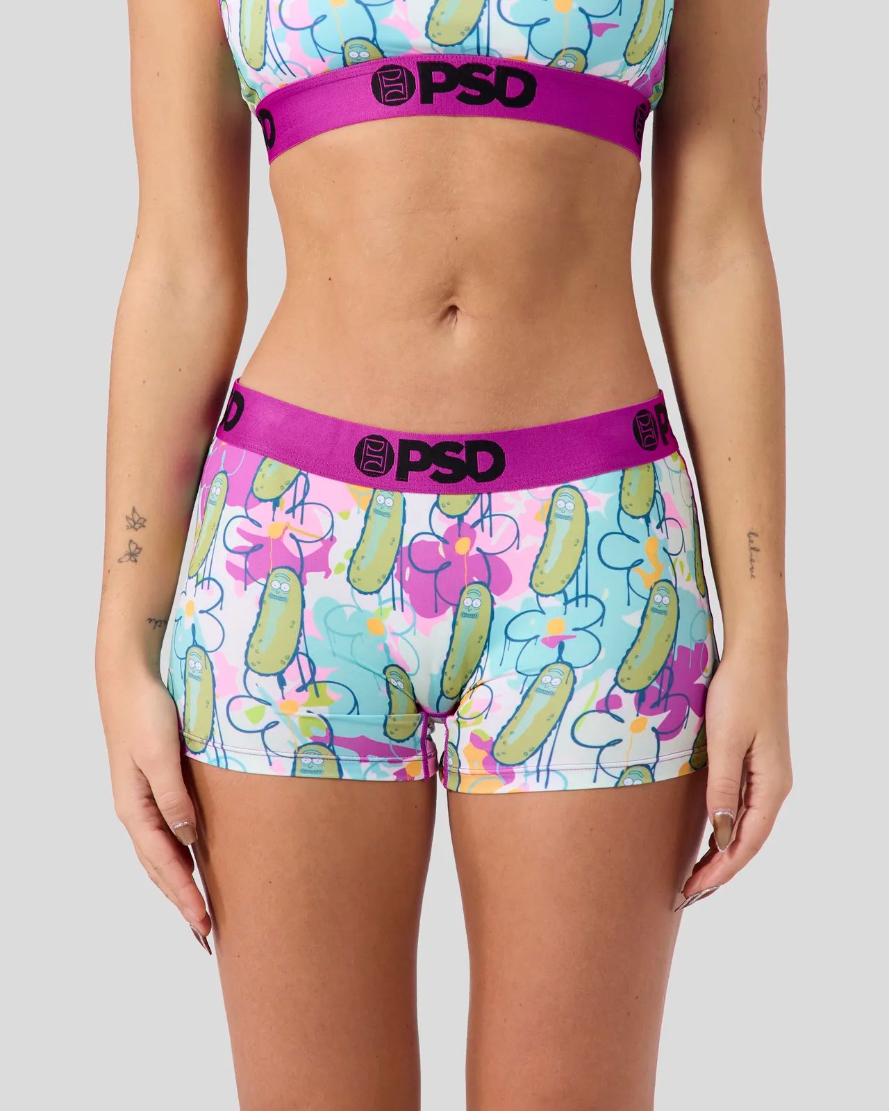 Pickle Rick is back in this floral-printed pair from Rick and Morty x PSD. The Pickle Drip Boy Short is made from a silky poly-blend with a comfortable, full-coverage, keep-you-in fit. The PSD boy shorts are perfect for everyday wear and working out.