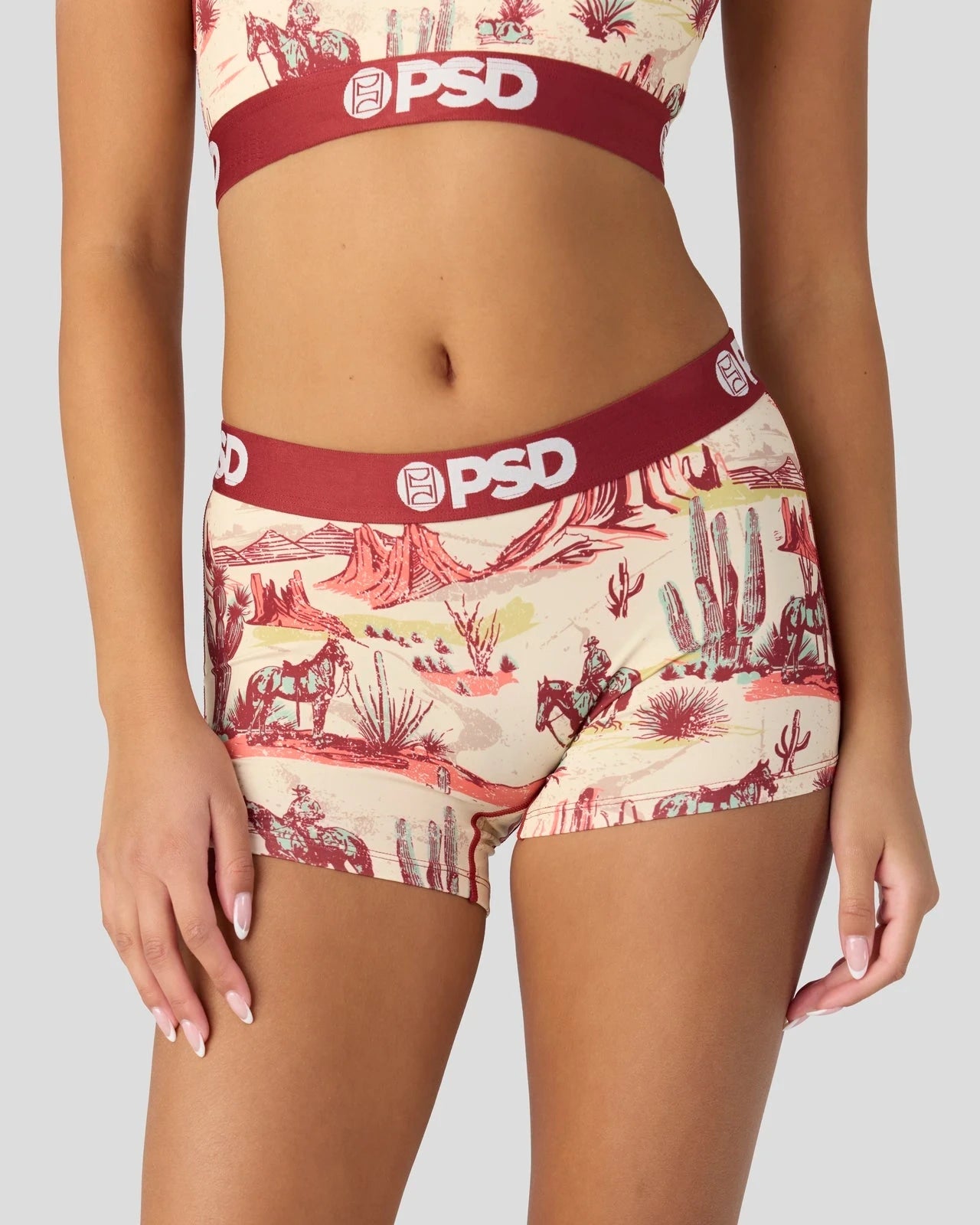 Put a little west in your wear with this new look. The Ranch Life Boy Short is made from a silky poly blend with a comfortable full coverage, keep-you-in fit. The PSD boy shorts are perfect for everyday wear and working out.